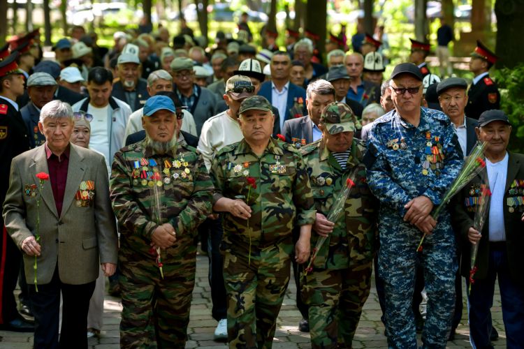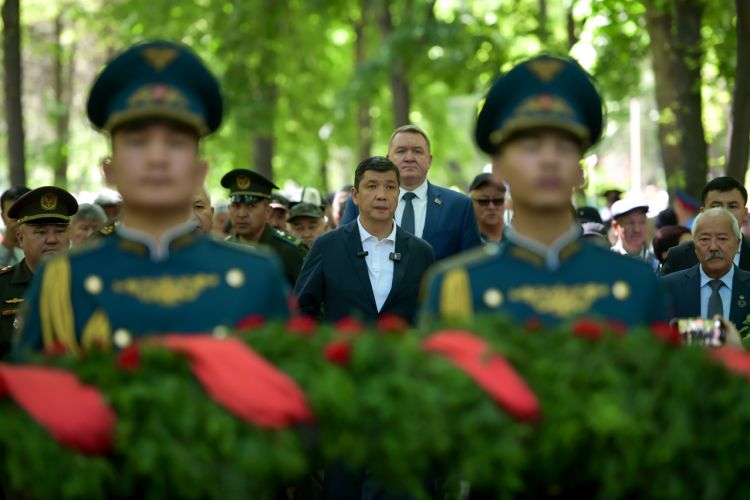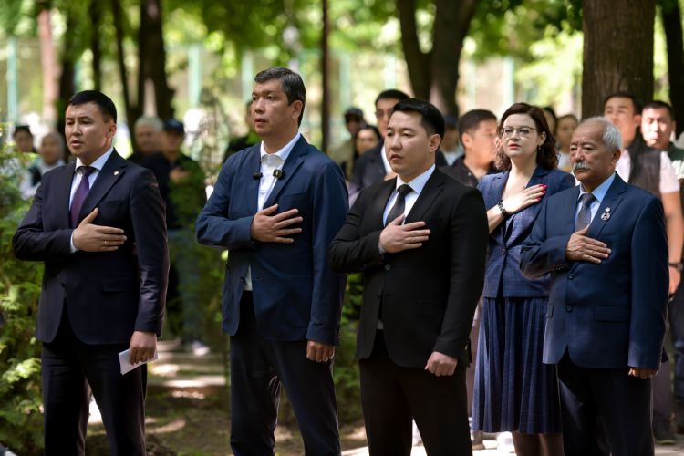 Церемония началась с торжественного возложения цветов к памятнику ликвидаторам, после чего была объявлена минута молчания в память о погибших, рота почетного караула Национальной гвардии КР произвела троекратный оружейный салют.